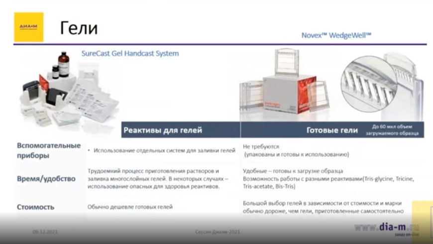Блоттинг – это просто!» Особенности применения готовых полиакриламидных гелей. Обзор эргономичной камеры для вертикального электрофореза Mini Gel Tank, Thermo FS (транскрибация видеозаписи вебинара лектория Диаэм сезона 2021 г.)