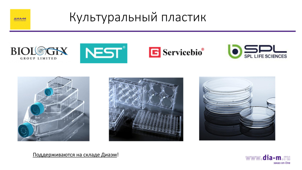 Поддержание большого количества брендов обусловлено и наличием у них разного ассортимента: у одних производителей есть эксклюзивный пластик, у других может его не быть: например, отсутствуют решения для 3D-культивирования или специальных условий культивирования, и тогда придется выбирать из одного бренда, у которого такая необходимая продукция представлена. Как раз за счет поддержания широкого ассортимента «Диаэм» создает для клиентов возможность выбора. И для тех, кто уже определился с каким-либо пластиком, уже есть возможность его приобрести в любой момент. На складе поддерживается большой запас пластика, в частности, компаний NEST, Biologix – вероятно, многие уже успели эту продукцию протестировать, но специалисты «Диаэм» готовы дать дальнейшие консультации.