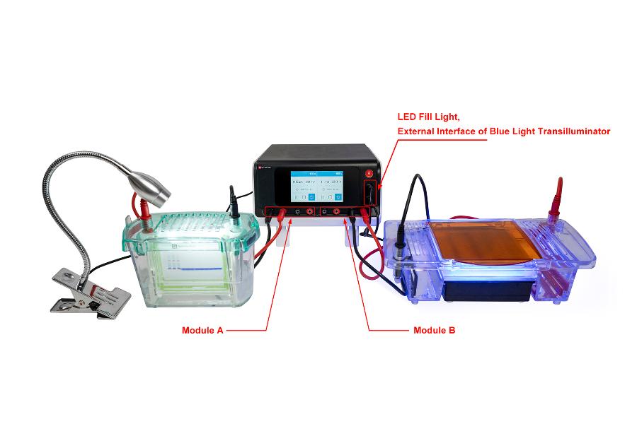 Источник питания вместе с электрофоретической камерой являются основными составляющими прибора для электрофореза. Электрофорез — это метод разделения макромолекул (белков и нуклеиновых кислот, а также их фрагментов) под действием электрического поля за счёт их отличий по заряду, молекулярной массе и конфигурации.