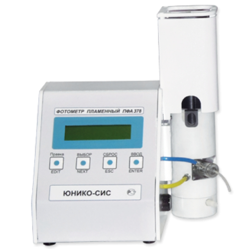 Пламенный фотометр необходим для определения щелочноземельных и щелочных металлов (K⁺ Na⁺, Ca²⁺, Mg⁺, Li⁺) в минералах, полученных созданием водной вытяжки; в растворах, для анализа содержания их в почве, в медицинских и ветеринарных препаратах, в биологических жидкостях. Принцип работы прибора — фотометрия эмиссии элементов веществ в пламени газовой горелки, куда вносится раствор аэрозольным способом. Оптическая система с дифракционной решеткой разлагает эмиссионное излучение элементов, фотодиодная линейка фиксирует спектральное излучение. Микропроцессорная система прибора измеряет интенсивность эмиссионных линий элементов, на индикаторе отражаются результаты анализа в единицах концентрации изучаемого раствора. Щелочные и щелочноземельные металлы в соединении с другими веществами способны расщепляться под воздействием высоких температур. Образовавшиеся в пламени атомы переходят на более высокий энергетический уровень, когда они возвращаются в первоначальное энергетическое состояние, выделяется излучение с длиной волны в видимой части спектра. И эта длина уникальна для каждого химического элемента. Анализ считается надежным в плане нахождения крайне низких концентраций веществ, что важно в экологических анализах, в которых используется гидрид-генератор.