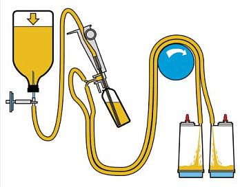 Устройство Steriosolutest EZ для контроля стерильности водорастворимых порошков в ампулах позволяет одновременно их растворять и перекачивать в канистры.