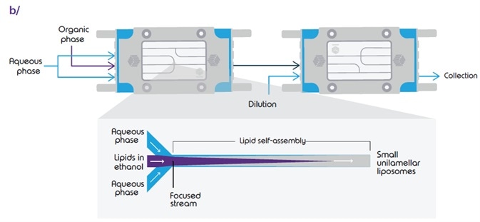 Помимо синтеза липосом, данная конфигурация системы может производить инкапсуляцию лекарств в оболочку размером 50-500 нм.