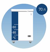 Компактный горизонтальный морозильник на 70 л обеспечивает стабильность температуры во всем объеме и равномерное замораживание образцов.