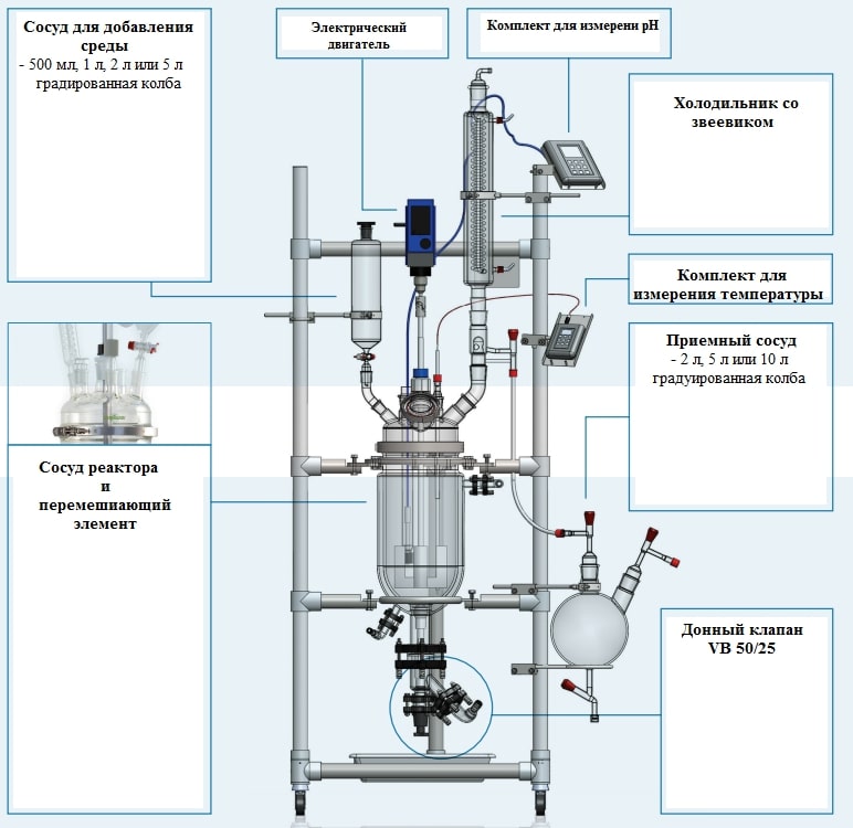 Улучшенная система для органического синтеза в пилотном масштабе с большими возможностями, более высокопроизводительным холодильником, фланцевыми зажимами, большим интерфейсом, комбинированным применением нескольких реакторов и другими сложными экспериментами. Каждый реактор поставляется с основными необходимыми начальными компонентами. Подходит для фармпроизводств, так как сконструирован в соответствии с GMP стандартами.