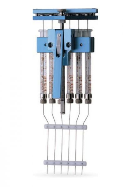 Сконструированы для повторяющегося дозирования одинаковых микрообъемов шести образцов; используются вместе со шприцами Hamilton; каждый степпер имеет 50 шагов (доз), т.е. за один шаг дозируется 1/50 объема шприца, что обеспечивает дозирование от 0,5 до 10 мкл за шаг в зависимости от общего объема шприца.