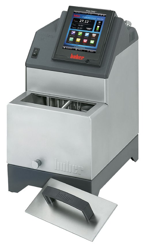 Охлаждающий термостат-циркулятор CC-K12 объемом 10,5 л с системой контроля скорости насоса, для термостатирования в диапазоне температур от −20 до +200 °С. Заменяемый блок Pilot One позволяет осуществлять дистанционное управление термостатом (нужен удлинительный кабель). С помощью USB- и Ethernet-выходов возможно подключение к ПК или внутренним сетям для дистанционного управления и регистрации полученных данных. Большой cенсорный дисплей отображает всю важную информацию о процессе.