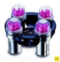 • может комплектоваться 4 круглыми (85 мл), либо прямоугольными (90 мл для круглодонных пробирок) бакетами.