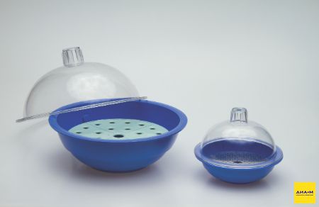Эксикаторы используются для поддержания определённой влажности воздуха и изготовлены из толстого стекла или пластика.