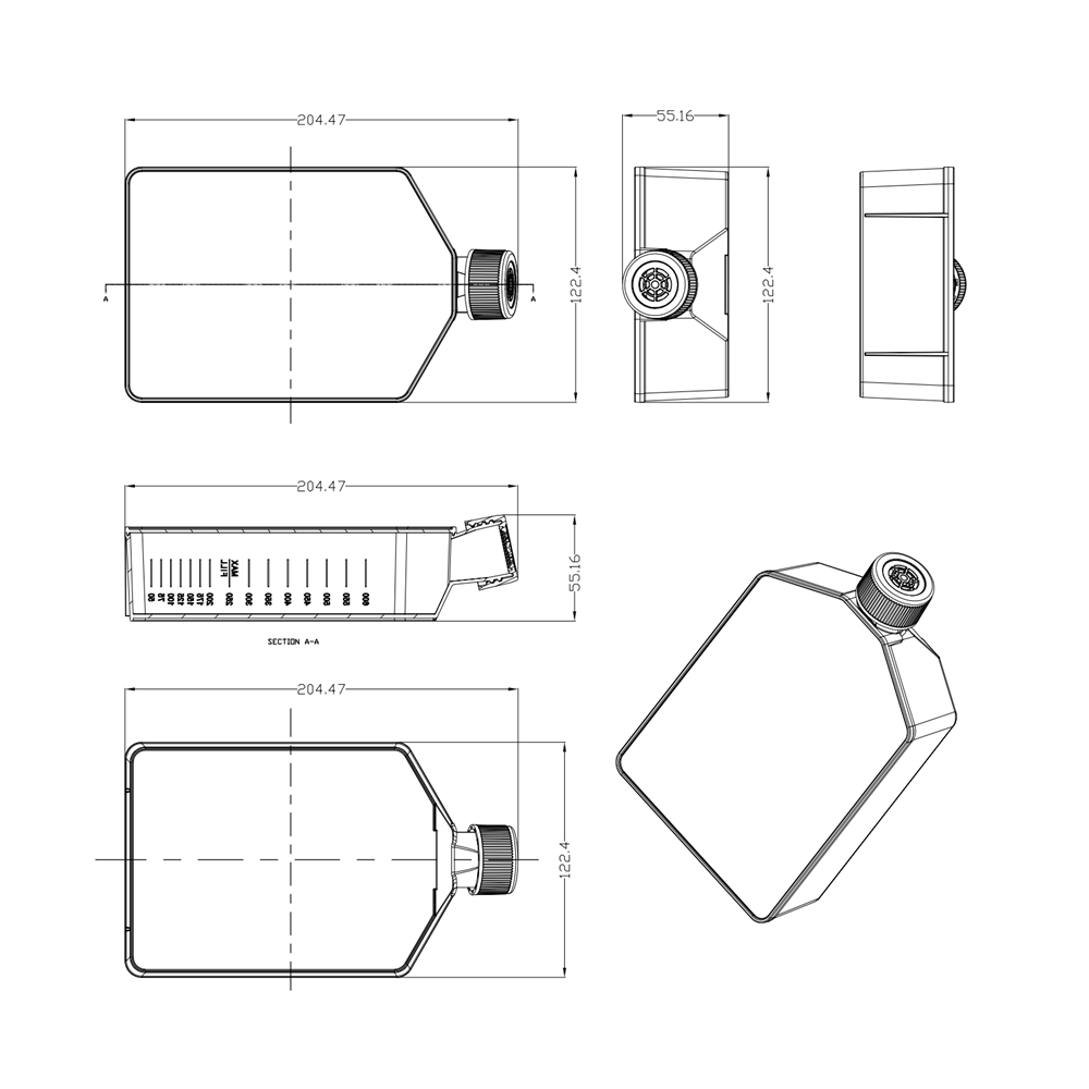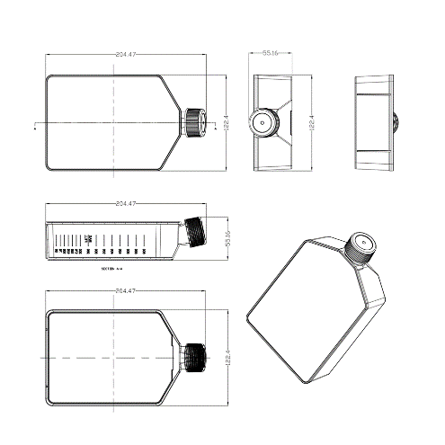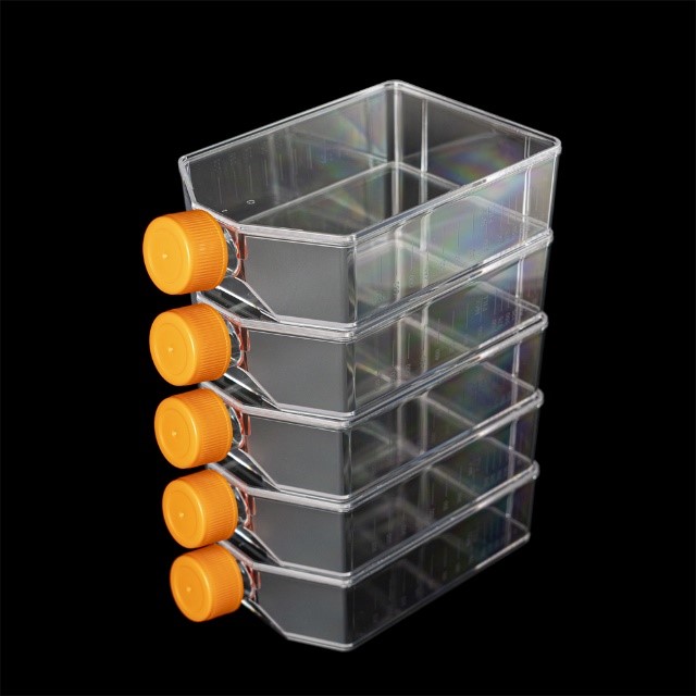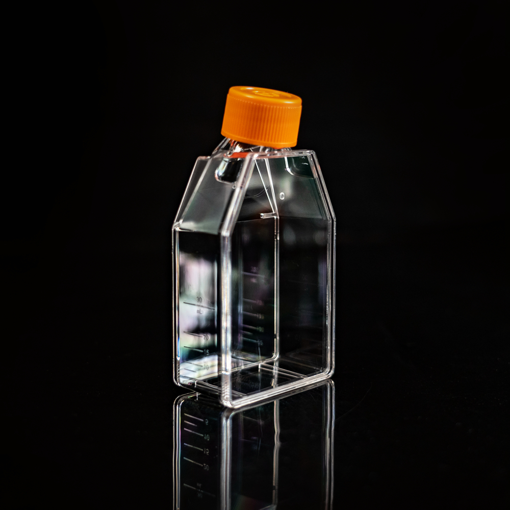 - Материал — флаконы для культивирования клеток изготовлены из полистирола (ПС). Прозрачный пластик позволяет наблюдать за клетками во время процесса культивирования.