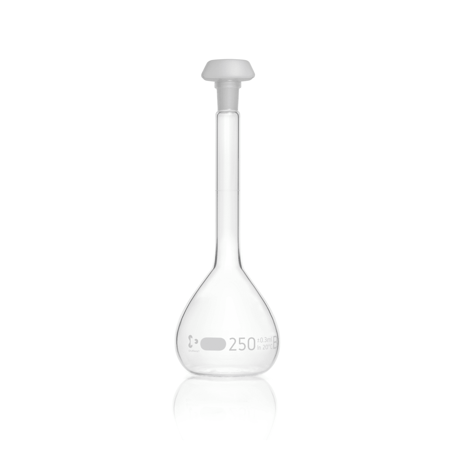 Колба мерная, 250 мл, класс В, d горла 15,5 мм, БС, шлиф 14/23, с одной отметкой, с крышкой из РЕ, белая градуировка, 2 шт/уп, DWK Life Sciences (Duran, Wheaton, Kimble, Rasotherm)