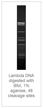 Эндонуклеаза рестрикции BfoI Fast Digest распознает и гидролизует сайты RGCGC↓Y при 37 °C за 5-15 минут в универсальном буфере FastDigest.