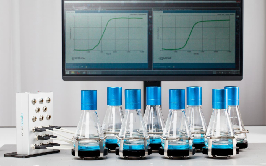 Опыт работы лаборатории с неинвазивными датчиками онлайн мониторинга биомассы Aquila CGQ при культивировании в колбах в шейкере-инкубаторе, Опыт использования датчиков Aquila CGQ для контроля за ростом культуры E.coli в режиме реального времени. |