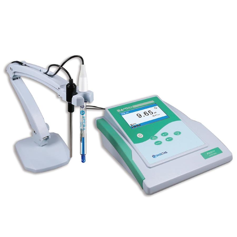 pH-метр — это прибор, используемый для измерения степени кислотности или щелочности водных растворов. Принцип работы основа на электрохимическом процессе, который позволяет анализировать pH раствора по его электрическому потенциалу. pH-метр содержит электроды, которые погружаются в жидкий образец, и устройства для определения и отображения полученных данных. По результатам анализа определяется уровень pH, который может варьировать от 0 (кислотный) до 14 (щелочной). pH-метры широко используются в лабораторной практике, а также в промышленности, сельском хозяйстве и других областях для контроля и регулирования pH в различных процессах. pH-метр PH2121 удобное устройство для измерения рН во всем диапазоне от 0 до 14, точность измерений составляет ± 0,01. Прибор оснащен TFT-дисплеем цветным, поставляется вместе с электродом LabSen211 с корпусом из стекла, температурным датчиком МР500. рН-метры серии 2120 это настольные приборы, оснащены удобным меню и USB- интерфейсом, измерительным стендом с держателем электродов и магнитной мешалкой. Характеристики pH-метра PH2121, Apera Instruments