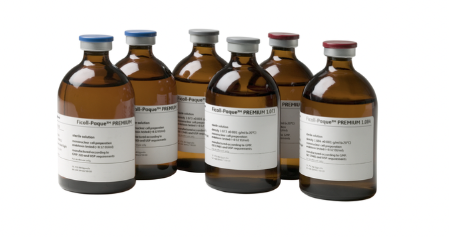 Ficoll Paque Premium – стерильный раствор полисахарозы 400 с плотностью 1,077 г/мл, который производится под строгим контролем согласно требованию ISO 13485:2012. Имеет сертификат стерильности, может быть использован как для научных, так и для клинических исследований in vitro.