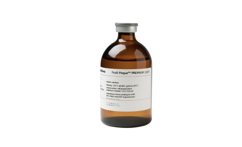 Ficoll Paque Premium 1.073 – стерильный раствор с плотностью 1,073 г/мл для выделения мононуклеарных клеток с низкой плотностью (например, мезенхимальных стромальных клеток или моноцитов).
