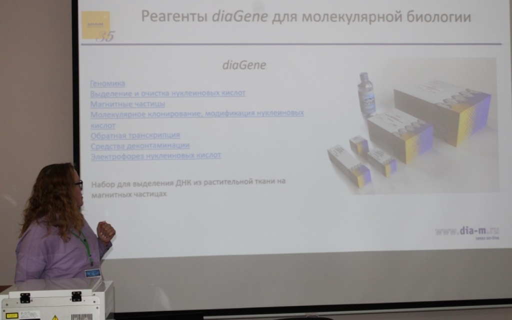 На докладе, компания Диаэм представила оборудование и реагенты, которые могут использоваться для работы с растениями.