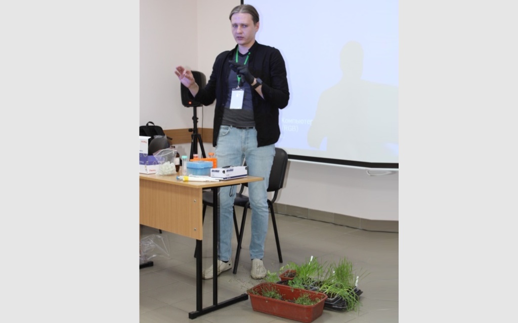 Скапцов Михаил Викторович, к. б. н., продемонстровал пробоподготовку растительной ткани.