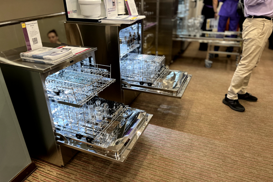 Большой интерес вызывал доклад о профессиональных лабораторных посудомоечных машинах, предназначенных для нетиповых и трудных задач в сфере мытья лабораторной посуды. Емкости сложной формы (с пазами, подключенными трубками), сосуды с трудно отмываемыми и жирными веществами на стенках можно очищать быстро и эффективно, без ручного труда. Такие аппараты существенно упрощают жизнь сотрудникам лабораторий, высвобождая время на более важные задачи.