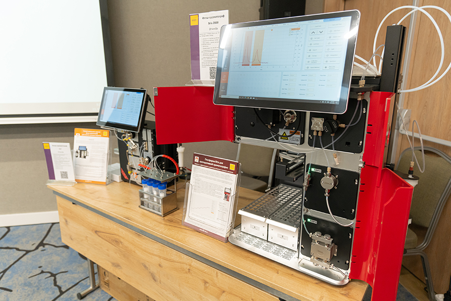 На демонстрационном стенде этой секции были представлены хроматографы различных типов: флеш-хроматографы ELF и Brix 2800 от компании Orienda и хроматограф жидностный Скороход.