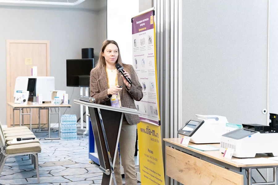 В секции «Белкового и клеточного анализа» ведущие эксперты разбирали ключевые и перспективные решения, применимые для различных сфер клеточной и молекулярной биологии. Рассказывали о новинках приборов для исследований in vivo; особенности использования микрофлюидных методик для разработки препаратов «адресной доставки». Специалист из РХТУ им. Д.И. Менделеева Анна Поливанова рассказала о технологии создания препаратов из серии противоопухолевых лекарств при помощи производных гиалуроновой кислоты. Руководитель данного направления Диаэм Сергей Ирхин сделал доклад о специфике микрофлюидной платформы NanoGenerator Flex-S Plus, которую можно использовать для поиска новых мРНК-вакцин и формирования библиотек нанолипосомных лекарственных форм.
