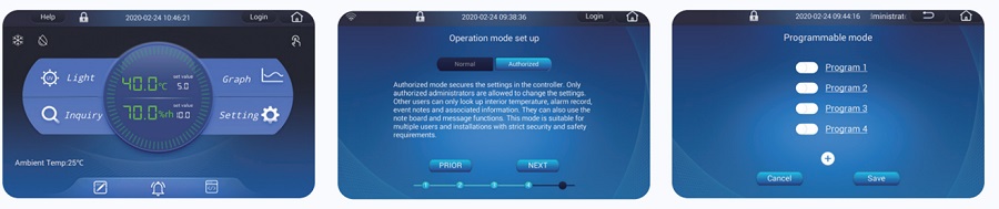 Программируемый режим, без лимита количества настроек. Возможность создания программ настройки температуры и влажности с бесконечным числом сегментов для покрытия любых задач пользователя