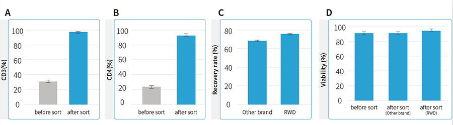 Наборы RWD для сепарации показали хороший выход, чистоту и выживаемость клеток. При этом стоимость как набора, так и колонок со стендом доступны для бюджета даже небольшой лаборатории.
