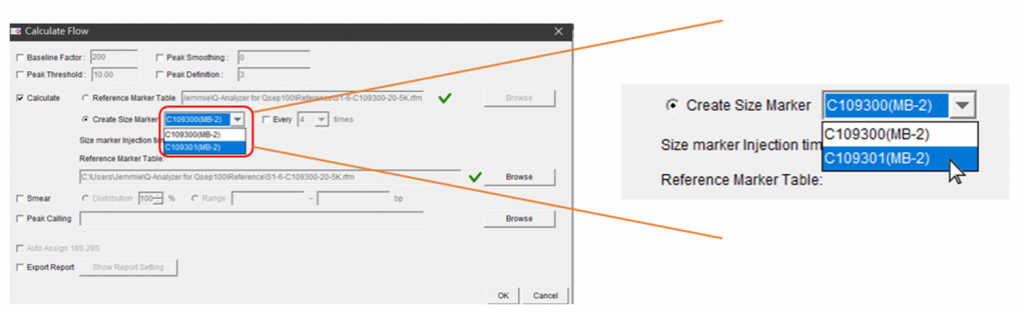 При активации функции «Создать размерный маркер» необходимо выбрать соответствующий маркер для качественного и количественного анализа (Рис.2).