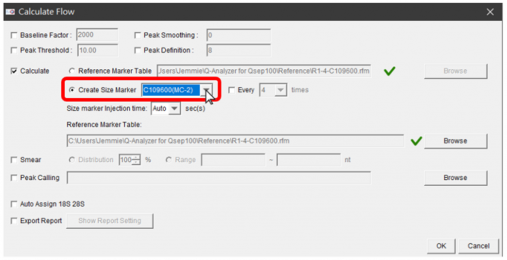 3. Q-Analyzer теперь поддерживает функцию создания размерного маркера RNA 6000 Ladder, чтобы обеспечить более точное определение размера и концентрации РНК (Рис.4). Пользователь может использовать RNA 6000 Ladder в качестве стандарта для измерения общего количества образцов РНК и получения более точных результатов по размеру и концентрации. Программа автоматически определит РНК –лэддер с помощью функции «создать размерный маркер» и в соответствии с результатом этого лэддера измерит размер и концентрацию неизвестных образцов.
