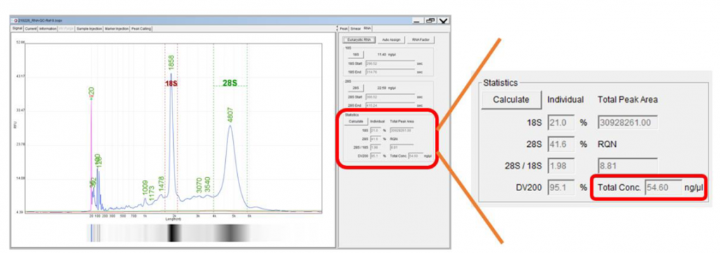 7. Алгоритмы автоматического назначения РНК 18S/28S и вычисления RQN улучшены, чтобы пользователи могли легко и точно определять качество РНК по информации 18S/28S.