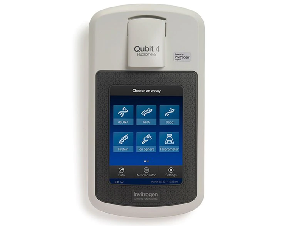 Для оценки концентрации и качества нуклеиновых кислот или белков можно использовать флуориметр Qubit 4. Преимуществом данного прибора является высокая специфичность, она проявляется благодаря высокочувствительным флуоресцентным зондам, которые излучают сигнал только при связывании с выбранной мишенью (ДНК, РНК или белком) в вашем образце. Чувствительность данного метода позволяет зафиксировать даже очень небольшие концентрации (от 0,005 нг/мкл). Недостатком можно считать необходимость пробоподготовки и покупка специальных наборов, без которых невозможна работа с прибором.