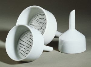 Предназначена для фильтрования под вакуумом, изготавливается из фарфора или стекла. В воронках из фарфора верхняя часть отделена от нижней перфорированной пластиной с порами от 1,25 до 3 мм. В стеклянном исполнении встречаются воронки с перфорированной пластиной или с фритой различной проницаемости, диаметр пор от 4 до 60 мкм. К нижней части воронки подводится вакуум. |