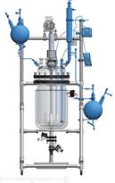 DN400 сосуд стеклянный с рубашкой и стеклянная крышка с 6 портами для подключения: DN45 центральный порт для мешалки; DN45 с крышкой для загрузки твердых веществ; NS29 для ввода жидкостей; NS45 для трубки отвода пара; NS45 закрытый и свободный порт, NS29 закрытый и свободный порт;