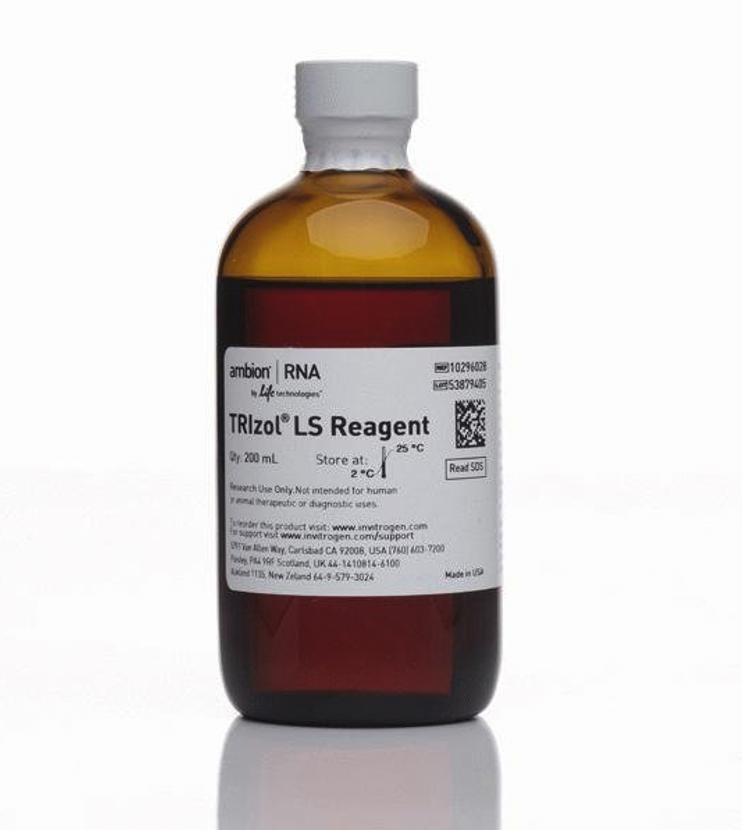 Готовый для использованию реагент для выделения РНК TRIzol LS (общей РНК, транскриптома, либо микро РНК) или одновременного выделения РНК, ДНК и белка из цельной крови, сыворотки или других жидких биологических образцов человека, животных, растений, грибов, бактерий и вирусов по технологии органической экстракции. Особенности реагента TRIzol LSРеагент TRIzol LS имеет следующие особенности: