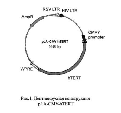 Лентивирусная конструкция, содержащая ген hTERT под CMV промотором была любезно предоставлена П.М. Чумаковым (ИМБ РАН) (Рис. 1).