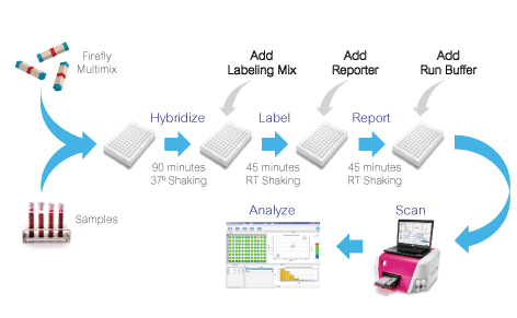 Каждая частица содержит три различных функциональных области, каждая из которых отделена инертными спейсерами. В центральной области частицы содержаться РНК-зонды, комплиментарные к целевой микро-РНК. Два концевых участка исполняют кодирующую функцию. Проточный цитофлуориметр детектирует каждую частицу как серию трёх сигналов. При прохождении частицы через проточную ячейку проточного цитоофлуориметра, прибор детектирует серию из 3х сигналов от каждой частицы и определяет интенсивность сигнала. Декодирование типа частицы и уровня сигнала осуществляется специализированным ПО. Программное обеспечение Firefly Analysis Workbench использует полученные данные для декодировния типа частицы и определения уровня микро РНК в пробе.