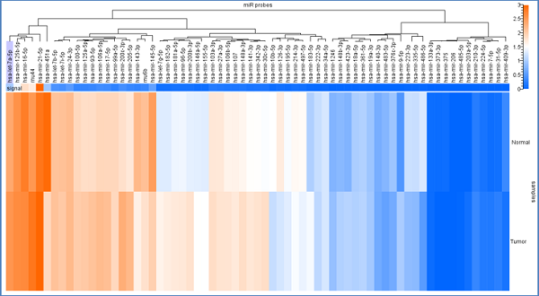 Интенсивность флуоресценции фикоэритрина (PE)-Cy5 из центрального участка определяет содержание той или иной микро РНК. Проточный цитофлуориметр детектирует уровень сигнала центрального участка частицы. Интенсивность сигнала прямо пропорциональна уровню мкроРНК в образце.